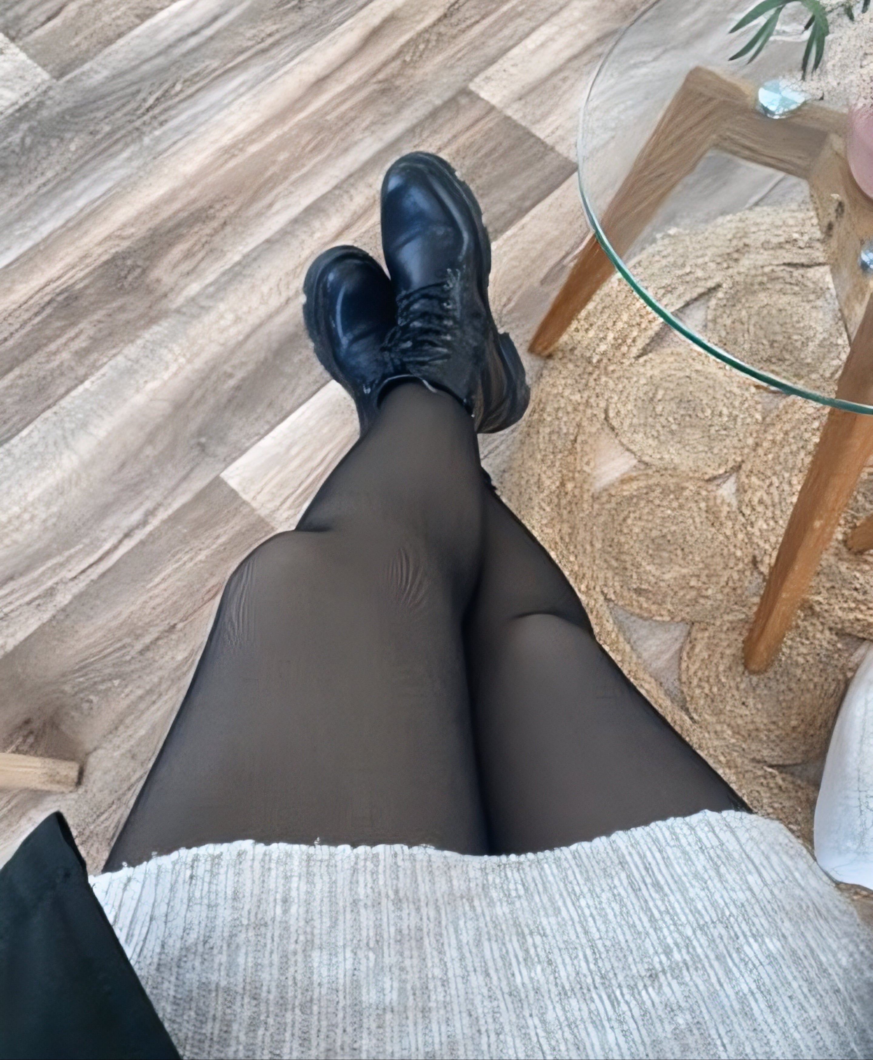 Le voile extérieur reproduit l’esthétique d’un collant fin, tandis que la structure interne garantit une opacité intégrale. Résultat :look léger,chaleur élevée,discrétion parfaite—comme un legging, sans l’effet “épais”.